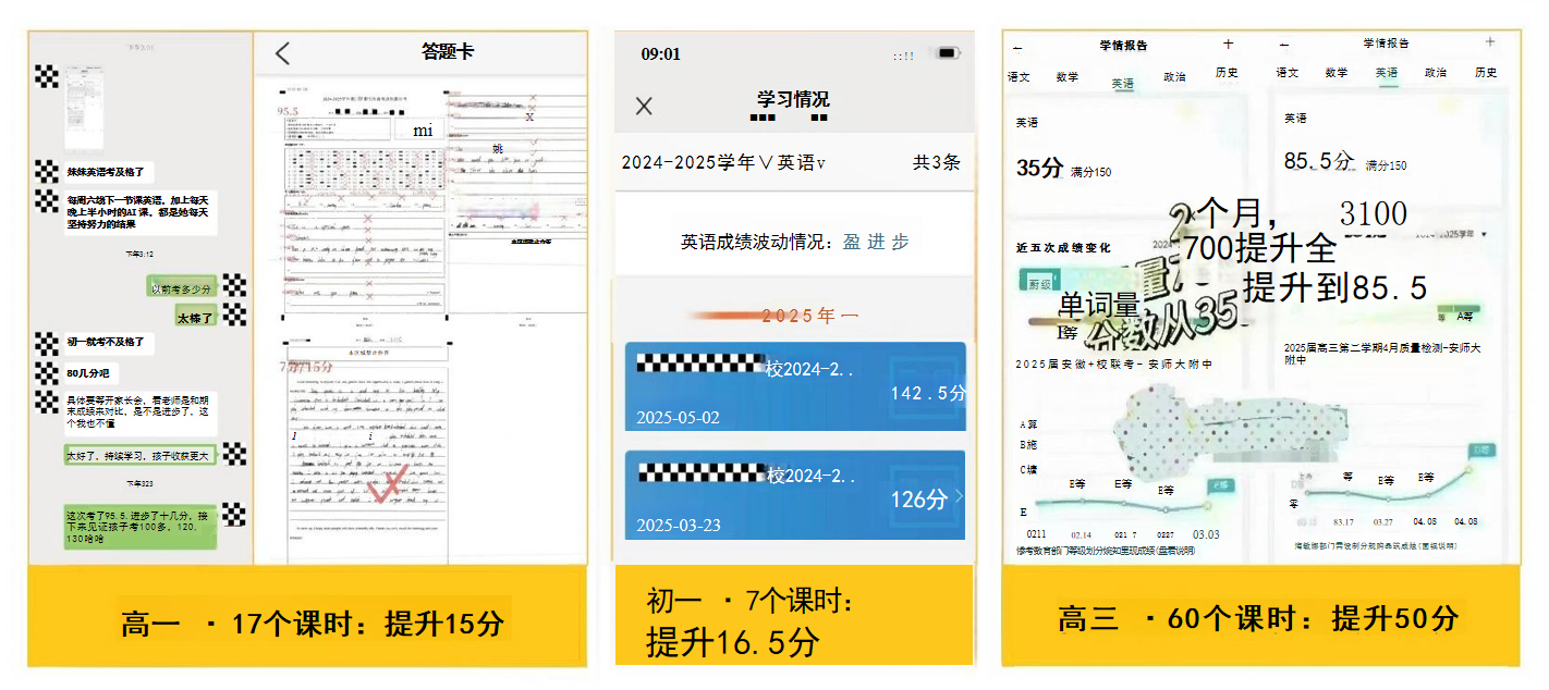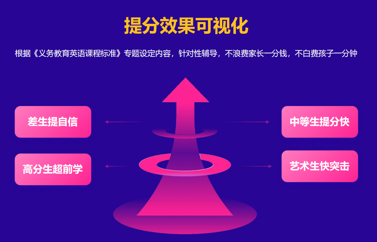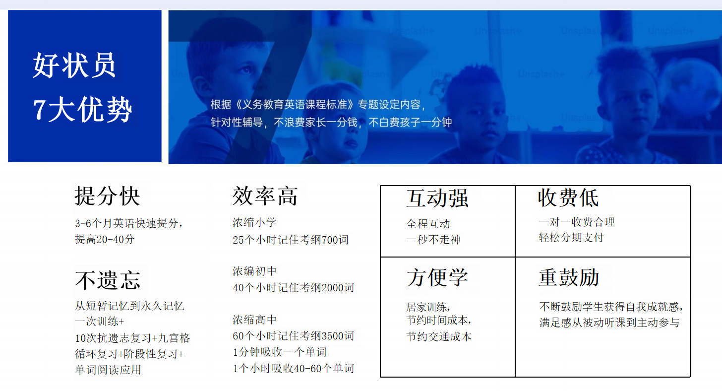在提分效果上,好状员用实力说话。已帮助 70 万学员,平均提分 20-60 分。初二学员 12 个课时提升 18 分,高一学员 6 个课时提升 16 分、50 分钟记忆 67 个单词,高三学员 60 个课时提升 50 分…… 这样的案例比比皆是。好状员根据《义务教育英语课程标准》专题设定内容,针对性辅导,让每一分投入都有回报,无论是差生提自信、中等生提分快,还是高分生超前学、艺术生快突击,都能满足需求。