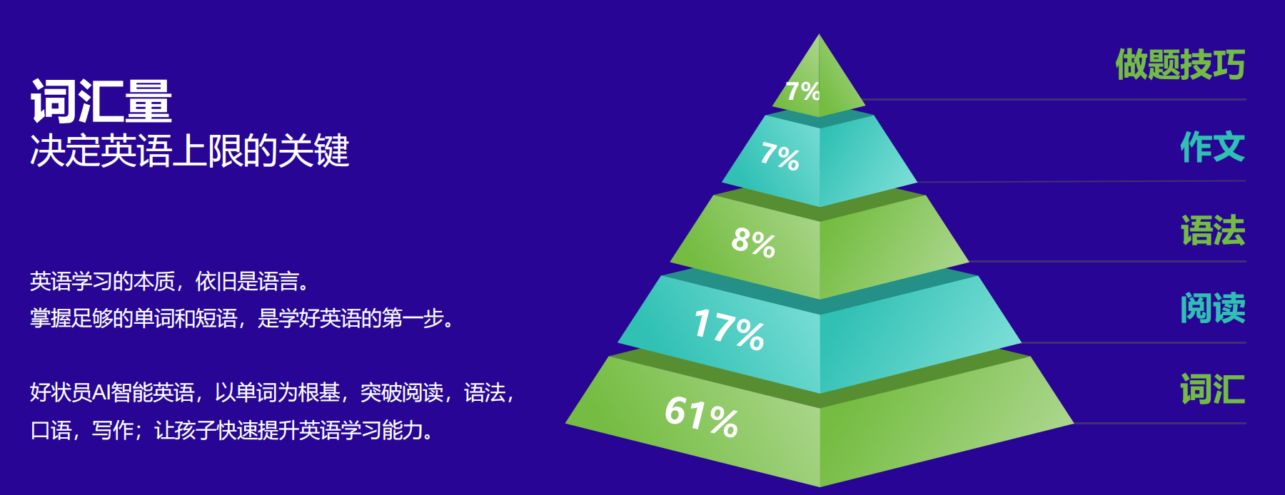 好状员 AI 智能英语,不仅让每个孩子都能高效快乐学英语,更能帮教培机构校长轻松学英语、减负千万家、赋能创富路。现在加入,抓住教育数字化黄金机遇,与好状员携手,共创教培行业新辉煌!