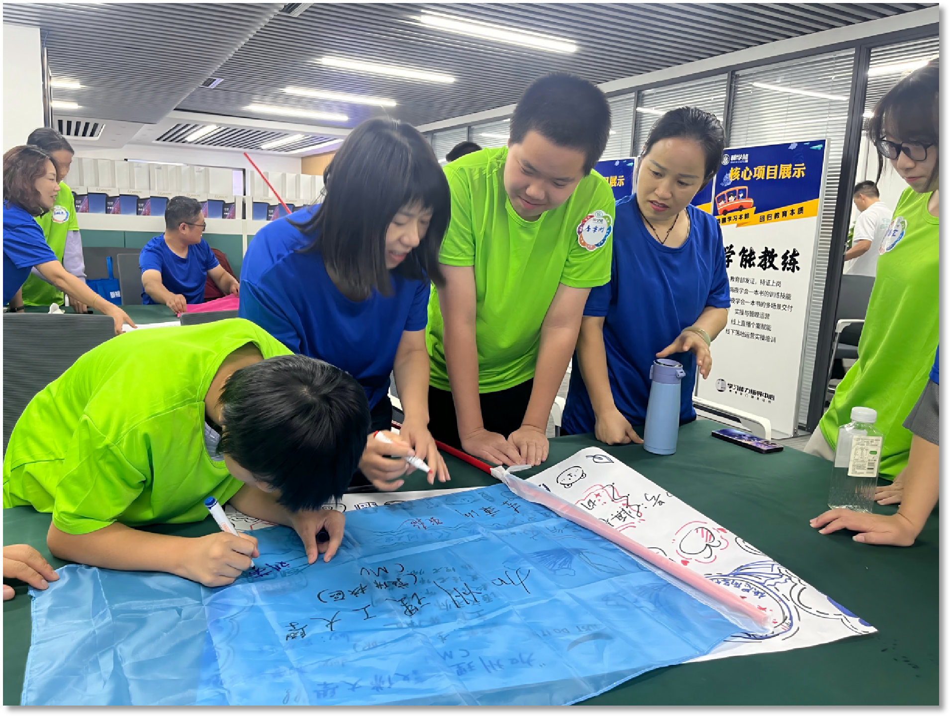 这个营地是全程欢迎家长在现场的,家长可以当观摩团,可以当小组助教,也可以当判官,他们可以给孩子去判卷儿,全程允许家长在现场。