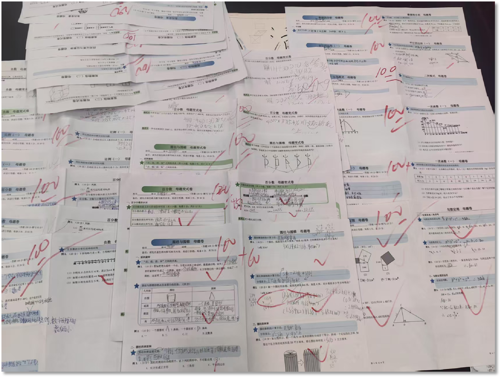 四天一本数学书能完成章章自主学习,卷卷满分过关,孩子可以主动学完一本数学书。学完不是完,而且考试要拿100分。这个100分指的是单元测100分,那么在期中期末考过程中成绩会大幅提升。孩子的100分分三类,分别是单元测100分,期中期末100分,中高考100分,这是三个不同的维度递增的。如果一个孩子连单元测都拿不到100分,那后面一定是拿不到100分的。